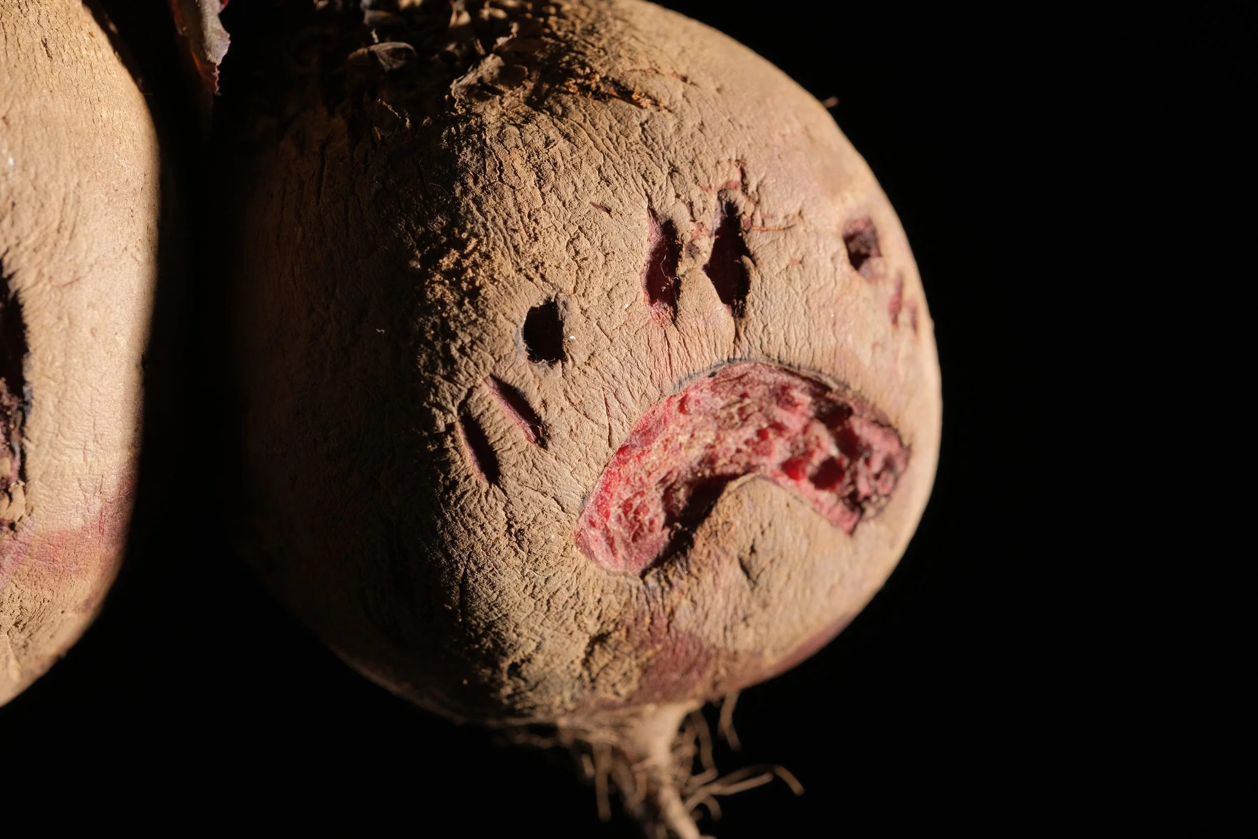An experimental illustration project using carved root vegetables. A mix of tradition and humour, exploring facial expressions.
